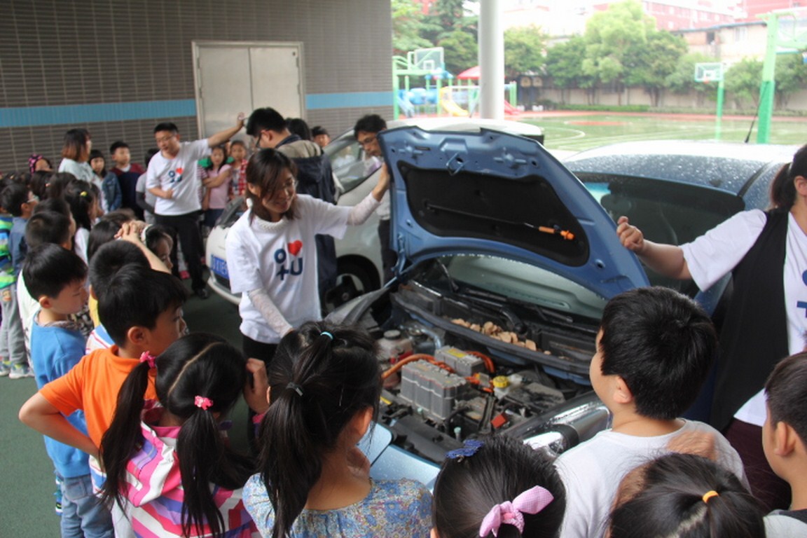 全校师生在志愿者老师的带领下,参观了新能源环保汽车,志愿者老师打开车前盖的一刹那,我们都瞪大了眼睛……里面的发动机、电能设备等都一目了然地呈现在我们面前……原来,汽车最核心的部位构造是这样的!最令我们兴奋的是:可以坐到新能源环保车里去体验一把!看着车外排队同学那期待的眼神,看着车里体验的同学那兴奋的表情,这回真是过足了隐!