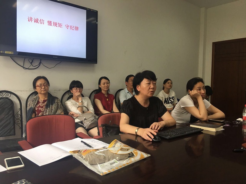 2016年6月24日,初中支部党员教师在行政楼二楼小会议室进行了党员集中学习活动。本次学习的主题是“学党章守纪律讲规矩”,由徐佩娟、于敏两位党员老师主讲,支部书记王海生老师主持。