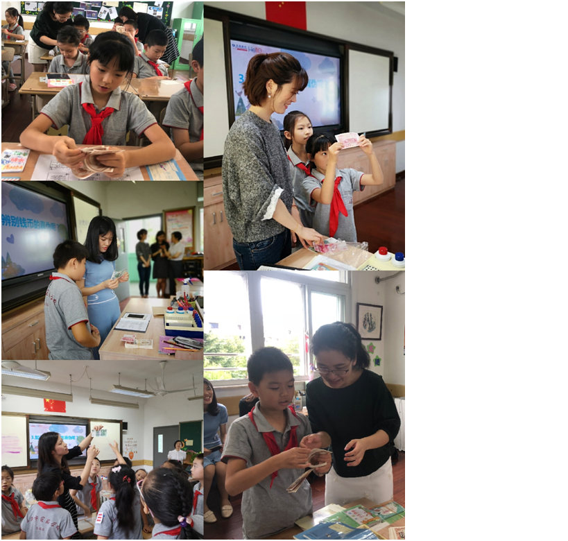 一进课堂,孩子们热烈的掌声让志愿者感动不已。志愿者以“认识钱币”为主题,运用生动活泼的案例、采用激励和互动式宣讲等多种形式,为同学们上了精彩的金融知识普及课程。志愿者们热情地和同学们分享有关钱币的历史、主要本币和外币、人民币的防伪鉴别知识以及点钞小技能等,为小学生普及金融知识,进行财商教育,做出了积极尝试。
