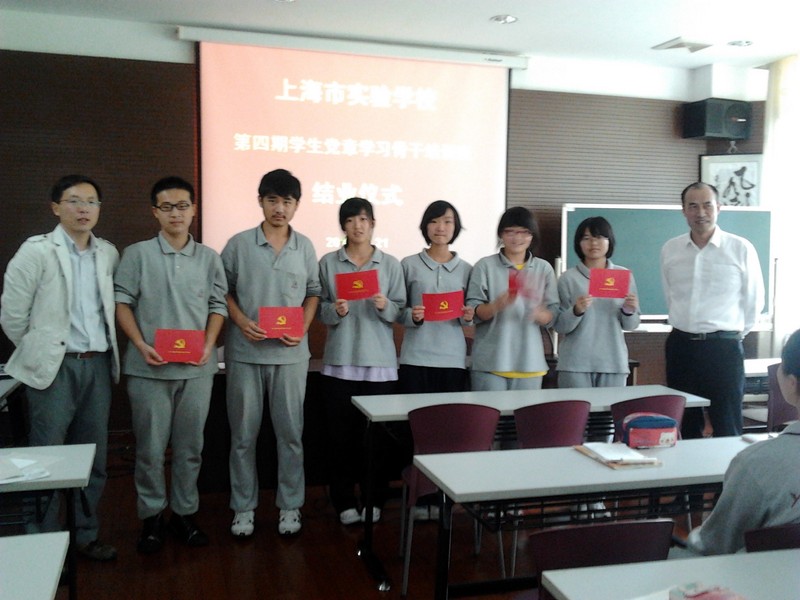 2011年10月21日中午,由我校党委主办、团委承办的第四期学生党章学习骨干培训班结业式在六号楼底楼综合会议室举行。校党委书记马季荣老师、党委委员(高中部副主任)李萍老师、校团委书记金珉老师出席并讲话。
