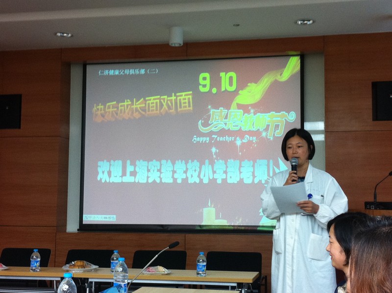 为了进一步体现教师的教育智慧,给医务工作人员就孩子的学习和教育问题解困,提供有效的参考意见,从而帮助家长树立正确的育儿观念,同时使今年的教师节庆祝活动更具意义,小学部和学校共建单位——仁济医院在10日下午一起开展了“快乐成长面对面”的交流活动。小学部教研组长及班主任代表参加了此次活动。