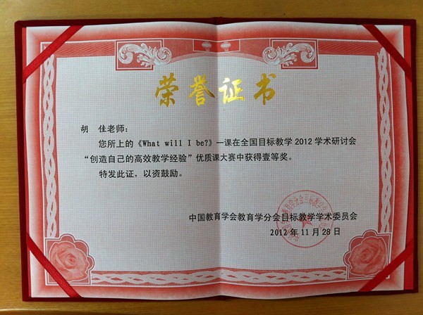 11月26日至28日,全国目标教学2012学术研讨会“创造自己的高效教学经验”在上海举行。在浦东新区教研员谢忠平老师的带队下,我校胡佳老师参加本次评比活动,最终获得全国一等奖。