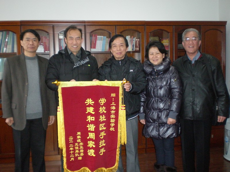 为贯彻落实上级教育行政部门关于学校向周边居民开放运动娱乐场地设施的要求,我校自2009年开始已经向周边单位开放了运动场地。2011年我校开始向周家渡街道的居民开放运动娱乐设施,我校将此项工作作为精神文明建设的重要抓手,从人员管理、场地维护等多角度加强管理。如今周家渡街道齐五居委的舞蹈队训练,已经成为我校中学部报告厅前每晚的一道风景线。21日上午,齐五居委的领导特意前来我校,向我校赠送了“学校社区手拉手,共建和谐周家渡”锦旗,对我校的大力支持表示感谢。马季荣书记接受了锦旗,他向居委领导表示,我校大力支持社区居民健康有益的文体活动,两家单位可以互相学习,互相帮助,共同为周家渡街道精神文明建设做贡献。