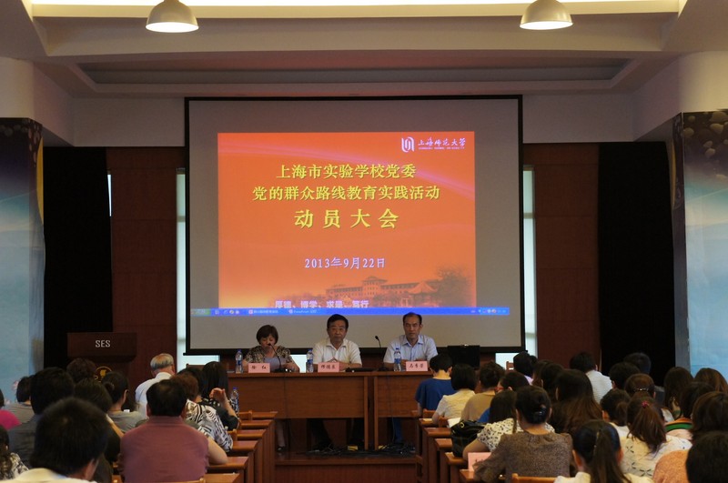 9月22日,上海市实验学校召开了党的群众路线教育实践活动动员大会,上海师范大学党的群众路线教育实践活动第二督导组组长缪德良同志、副组长宋波同志及督导组部分成员参加了大会。