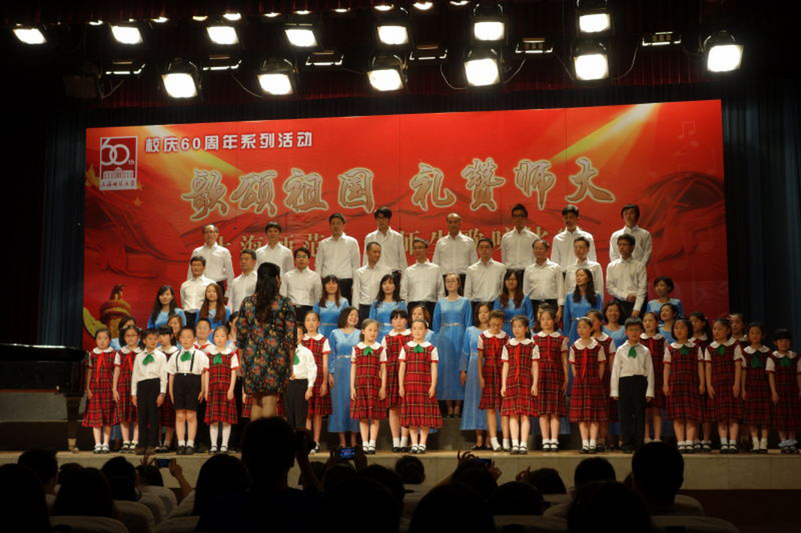 为迎接上师大建校60周年,在校党委、行政的关心支持下,我校工会组织了一支由师生和家长共同参与的68人的实验合唱团。比赛前期,大家放弃休息时间,积极参与每一次的排练,在刘咏梅老师的精心指导下,大家练习着,享受着。