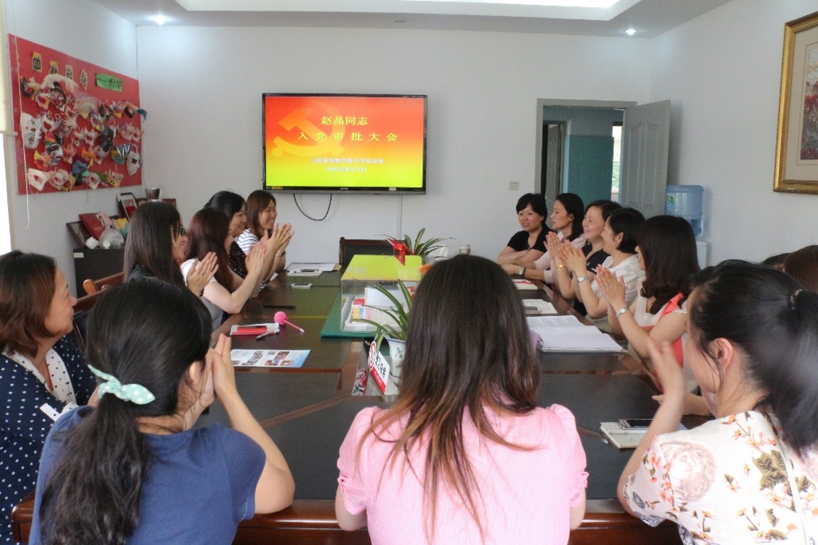 鲜红的党旗,庄严肃穆的氛围,2014年6月13日小学部党支部举行了赵晶老师的入党审批大会。与会的有上海市实验学校小学部党支部全体党员。