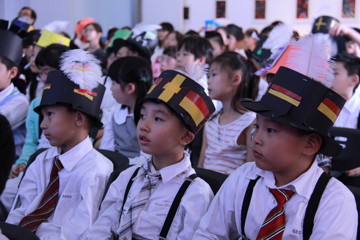 10月22日下午,上实国际部的同学们一个个身穿模拟的德国传统服饰:男生背带短裤加长筒袜;女生束腰花边裙,头戴自制的羽毛小礼帽,五彩缤纷,兴致勃勃!全然是满校园的德国帅哥和靓妹的感觉,风情浓郁!原来,2014SESID外国文化节活动之“HeIlo!Germany!——你好!德国!”活动,启动啦!