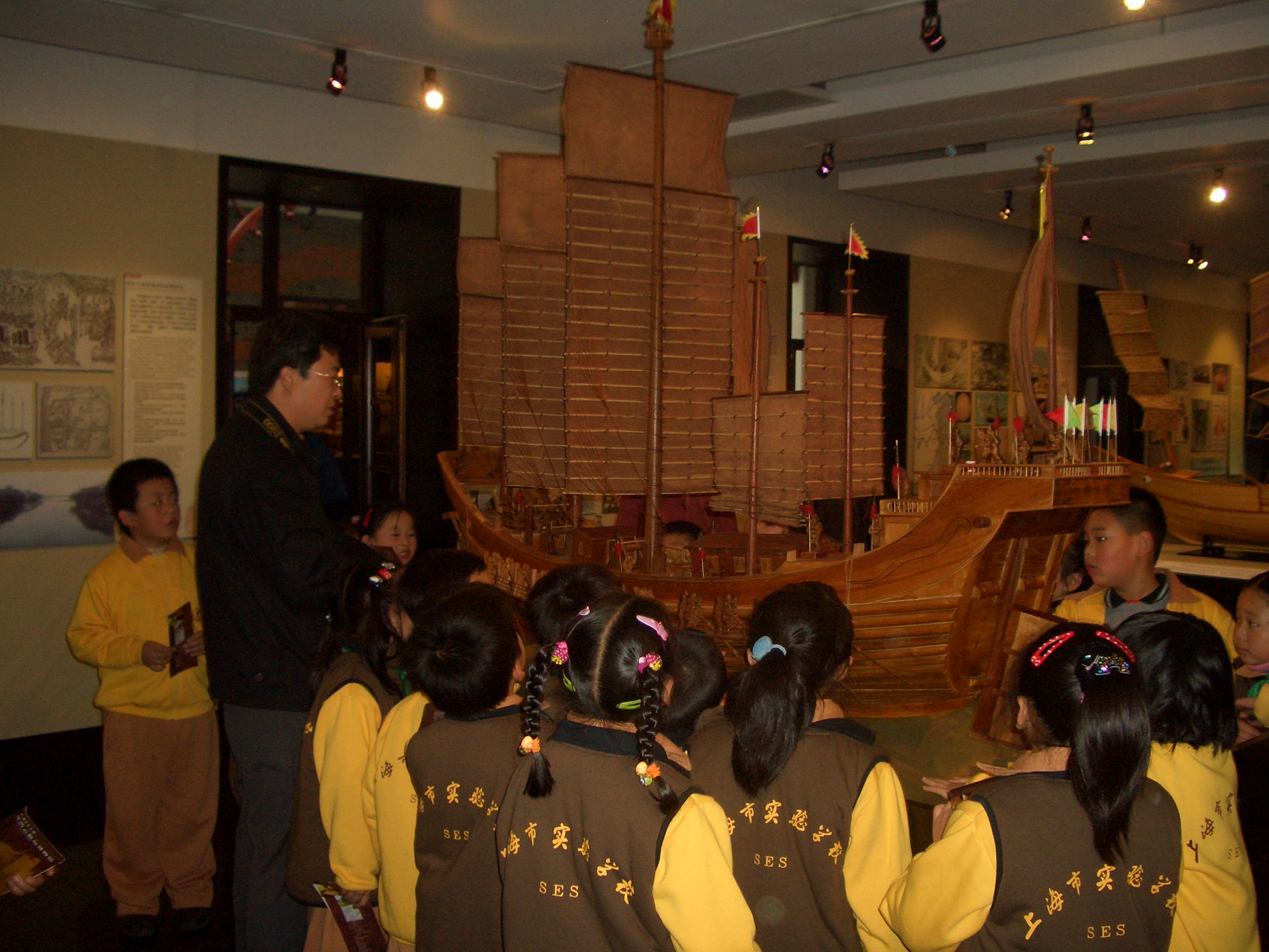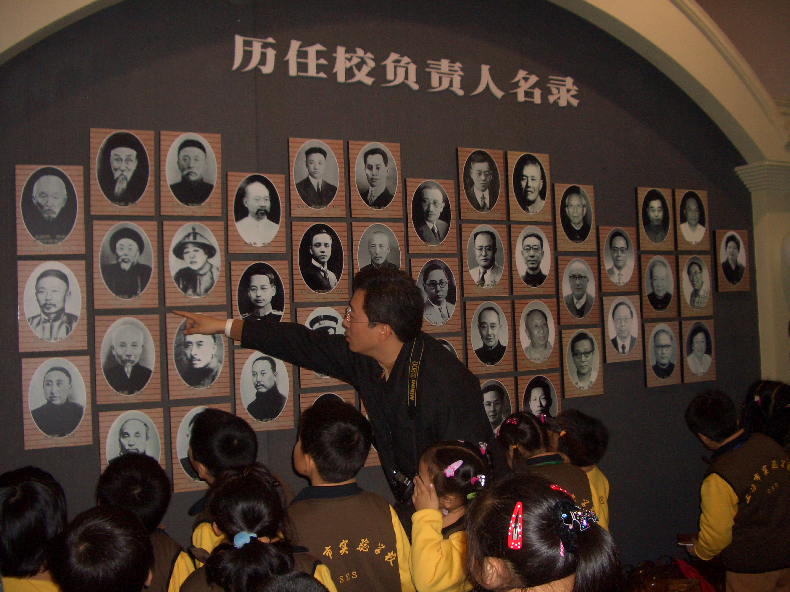 当孩子们得知实验学校的许多大哥哥大姐姐如今都在这所百年老校就读时,对这所学校更充满了敬仰和好奇之心。在袁嘉毅爸爸的引领下,我们先参观了交大的董浩云船务馆。通过聆听袁嘉毅爸爸的专业讲解,孩子们知道了郑和下西洋的故事,首次亲眼目睹了当时一艘艘各具特色的古船模型,孩子们收获非浅。紧接着,我们又来到了校史陈列馆。馆内,一张张泛白的老照片如同一部回忆录,向孩子们展现了交大这一百多年来所走过的风雨足迹。